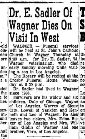- Ernest Dale Sadler b. 30 Jan 1916, d. 1 Nov 1999