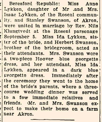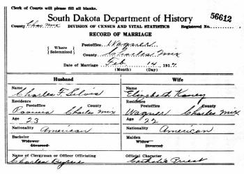 - [S342] South Dakota, South Dakota Marriage Certificates, 1905-1949, Marriage Date: 06 Jul 1910.