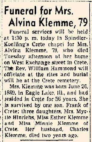 - Hermine J. Klemme b. 6 Mar 1894, d. Oct 1979