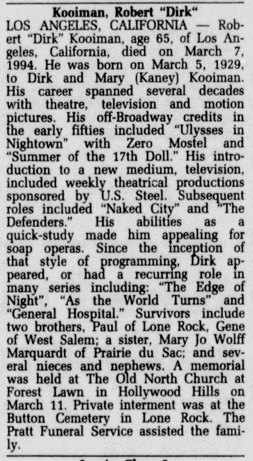 | Father* | Dirk Kooiman b. 1 Mar 1898, d. 15 Feb 1985 |