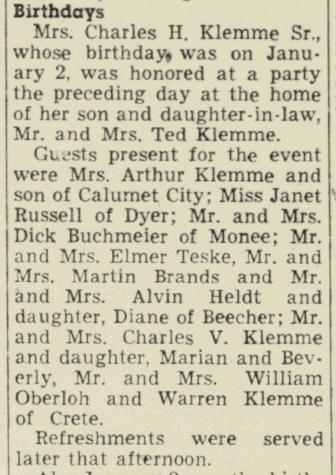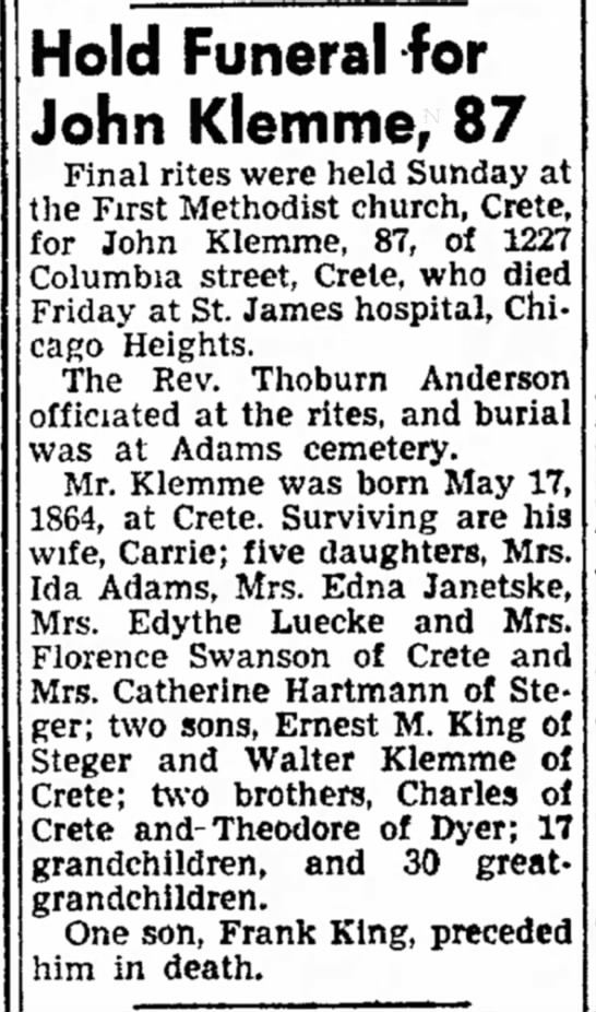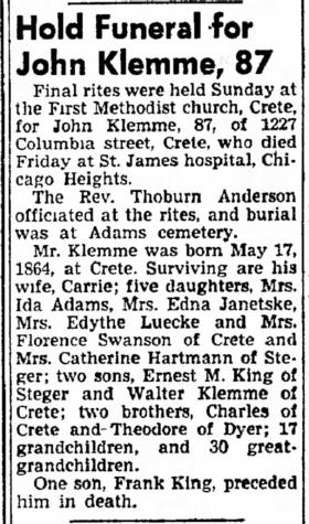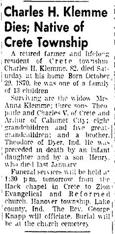 - Henry E. Klemme b. 8 Dec 1901, d. Jan 1953