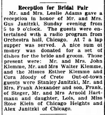 - [S193] Church Record, Zion United Lake Co IN Extract, Spouse place = Washington, IL.