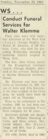 - Walter William Klemme+ b. 21 Nov 1897, d. 20 Nov 1963