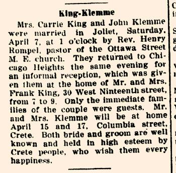 | Father* | John Charles Klemme b. 17 May 1864, d. 25 Apr 1952 |