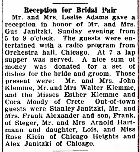 - [S193] Church Record, Zion United Lake Co IN Extract, Marriages pg 109.