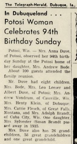 - Lucille M. Duve b. 8 May 1917, d. 1 Jan 2001