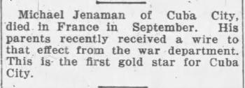 - Michael Jenaman b. 15 Oct 1887, d. Sep 1918