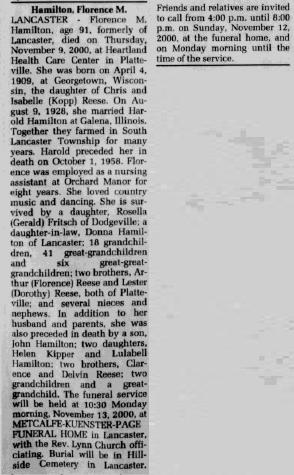 | Mother* | Florence Mary Reese b. 4 Apr 1909, d. 9 Nov 2000 |