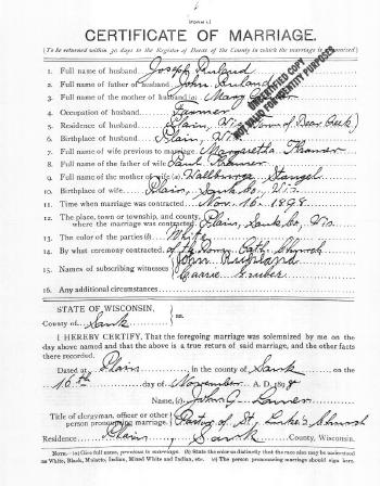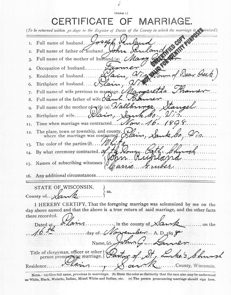- [S246] U.S. Federal Census 1880 U.S. Federal Census, by Ancestry.com, Year: 1880; Census Place: Franklin, Sauk, Wisconsin; Roll: 1446; Family History Film: 1255446; Page: 99A; Enumeration District: 251.