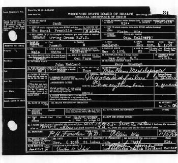 - Frank Ruhland b. Jan 1883, d. 24 Apr 1926