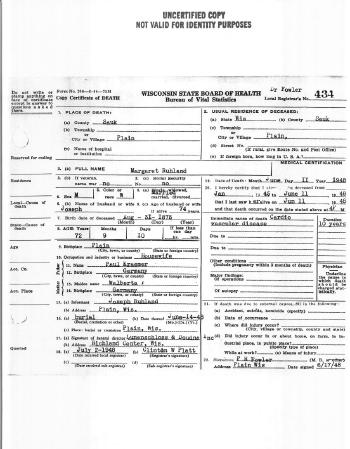- Carrie Ruhland b. 15 May 1881, d. 26 Jan 1970