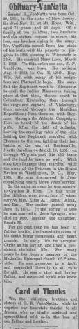 - Thomas VanNatta b. 1844, d. 14 Aug 1864