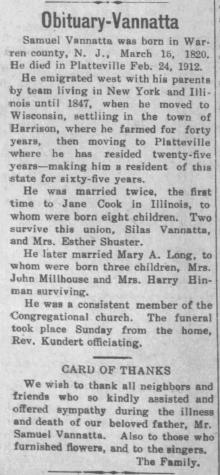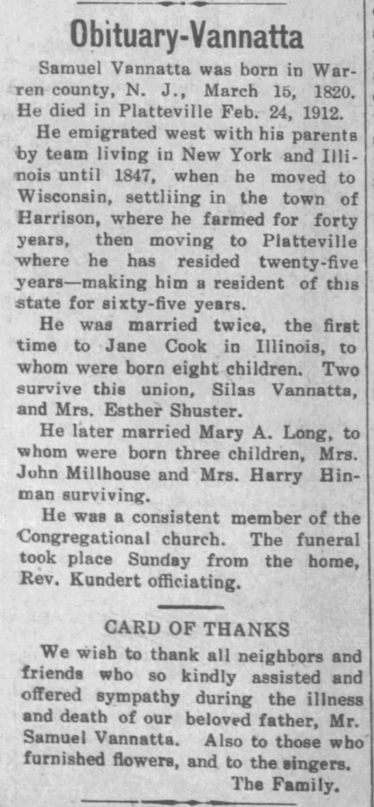 - [S5] Wisconsin, Wisconsin Marriages, 1835-1900, listed under Vanatta, Samuel.