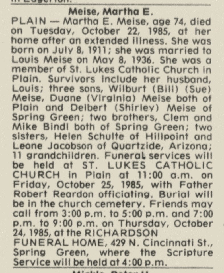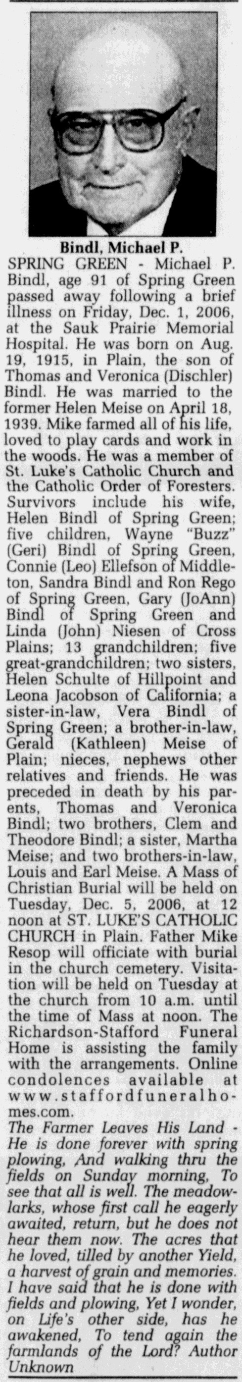 | Father* | Thomas H. Bindl b. 20 Dec 1881, d. Oct 1962 |