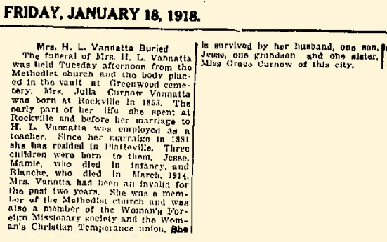- Charles C. VanNatta+ b. 13 Jan 1874, d. 22 Sep 1906