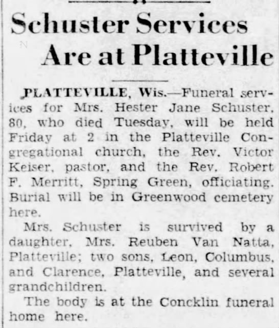 - Clara Mae Schuster+ b. Oct 1886, d. 8 Feb 1987