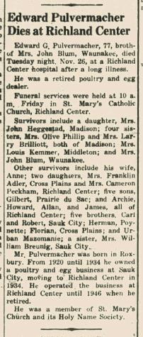 - Howard L. Pulvermacher b. 23 Jun 1919, d. 23 Oct 1988