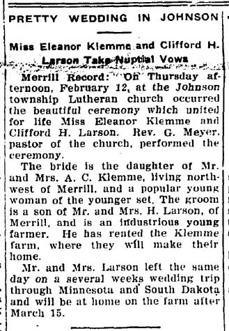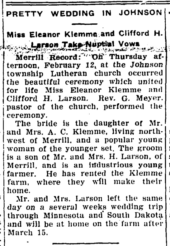 Child of Eleanor Pauline Klemme and Clifford H. Larson