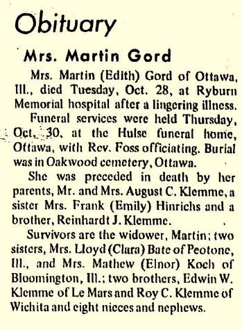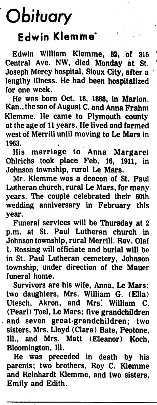 | Father* | Edwin William Klemme b. 18 Oct 1888, d. 24 May 1971 |