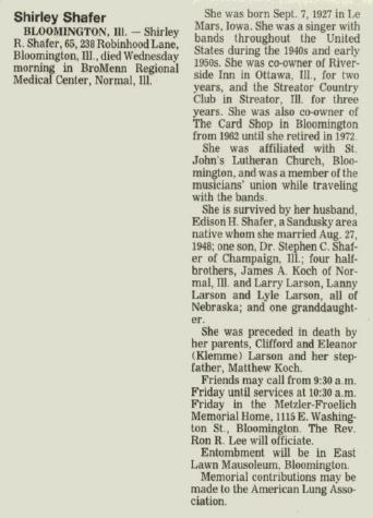 - Shirley Rae Larson+ b. 7 Sep 1927, d. Jun 1993