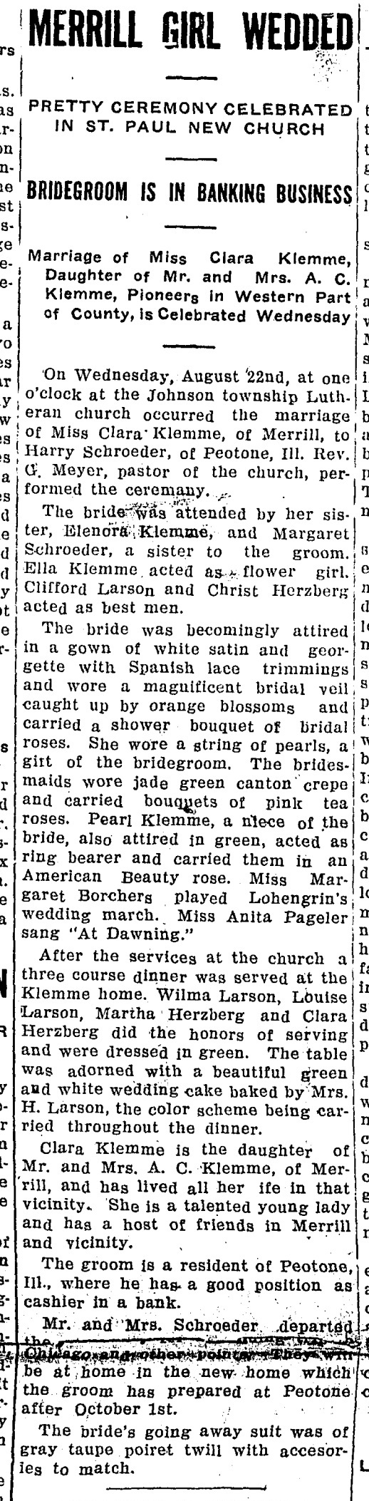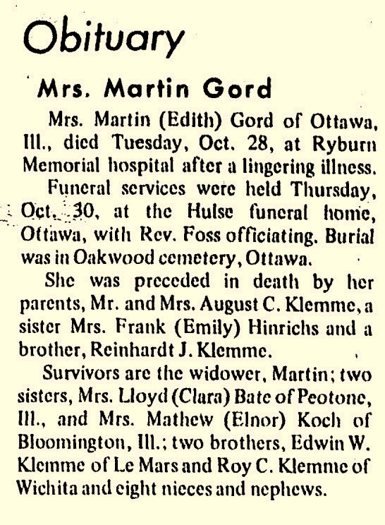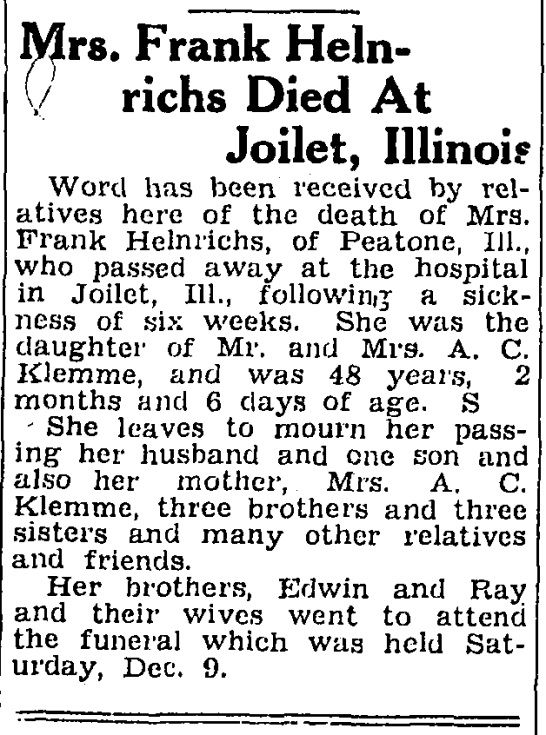 | Mother* | Emily A. Klemme b. 1 Oct 1891, d. 7 Dec 1939 |