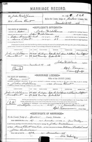 - [S246] U.S. Federal Census 1880 U.S. Federal Census, by Ancestry.com, Year: 1880; Census Place: Precinct 5, Cedar, Nebraska; Roll: 744; Page: 302D; Enumeration District: 086.