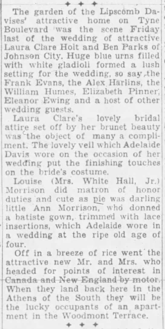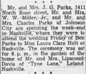Child of Benjamin Cheairs Parks Sr. and Laura Clare Holt