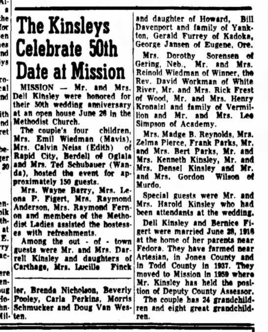 - Wanda Lee Kinsley b. 27 Aug 1937, d. 30 Jan 2021