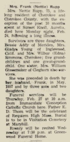 - Edna Rupp b. 7 Feb 1921, d. Nov 1993
