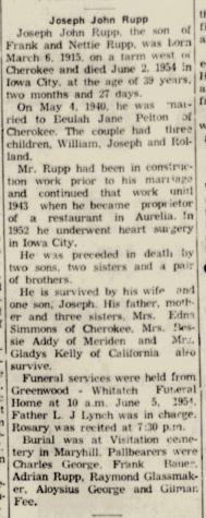 - Joseph John Rupp+ b. 6 Mar 1915, d. 2 Jun 1954