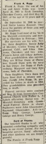 - Wilmer John Rupp b. 19 Aug 1920, d. Aug 1983