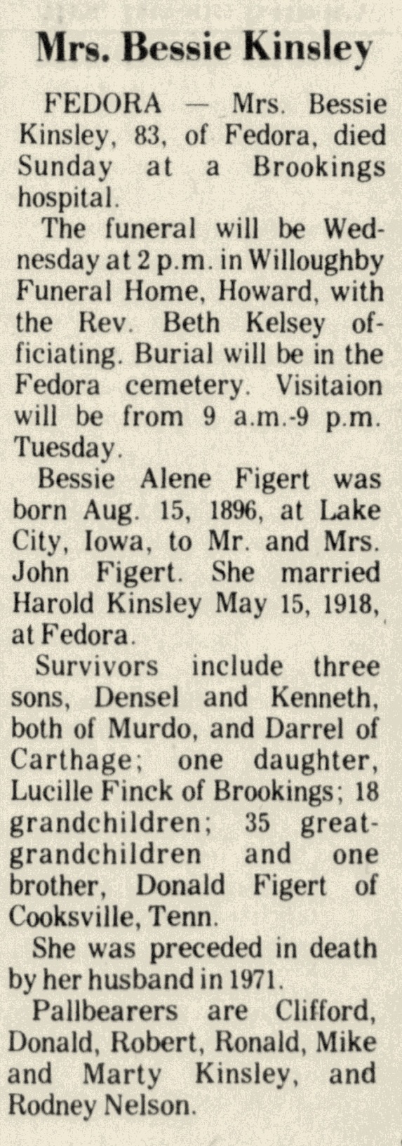 | Father* | John Ethan Matthew Kinsley b. 13 Apr 1864, d. 21 Jun 1918 |