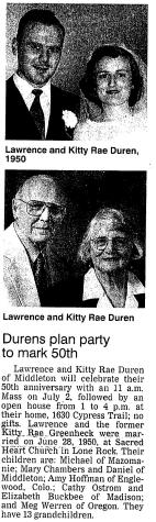 Children of Bonnie Ann Veronica Duren and Francis Albert Greenheck