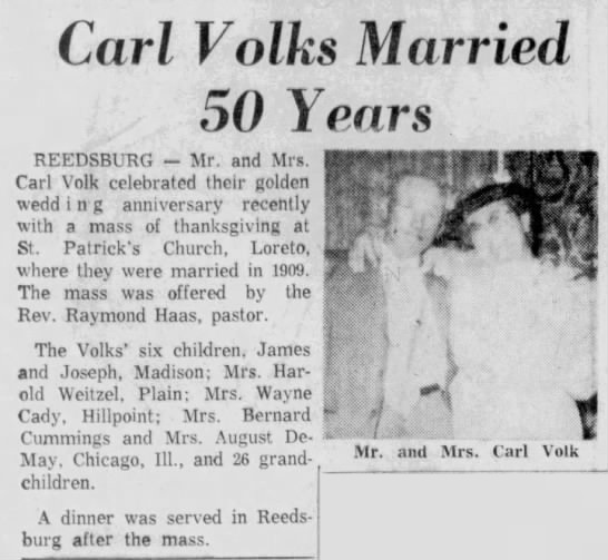 | Father* | Joseph Volk Sr. b. 1842, d. 1922 |