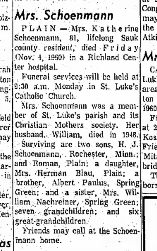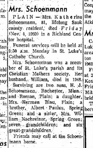 - Katherine Paulus+ b. Dec 1878, d. 4 Nov 1960
