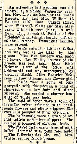 Child of Walter C. Watts and Margaret Elizabeth Behrens