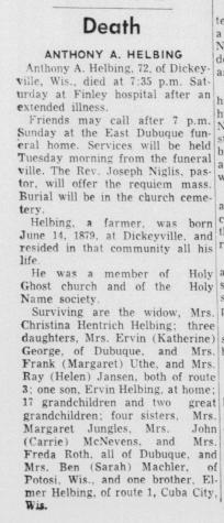 | Father* | Anthony Adam Helbing b. 14 Jun 1879, d. 8 Dec 1951 |