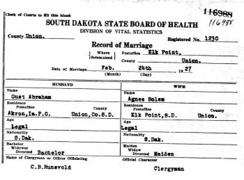 - [S342] South Dakota, South Dakota Marriage Certificates, 1905-1949.