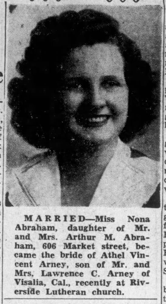 | Father* | Arthur Matthew Abraham b. 19 Jun 1899, d. 25 Apr 1961 |