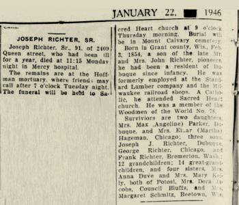 - Joseph John Richter b. 28 Feb 1878, d. 1956