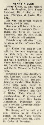 - Wilfred Kieler b. 1922, d. 6 Jun 1962