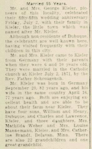Children of Lawrence George Kieler and Amelia Dorothy Weber